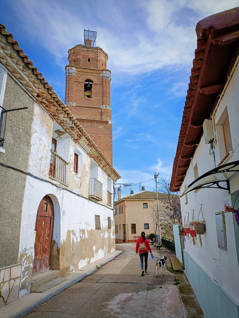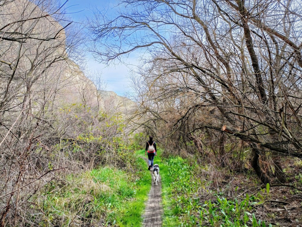 Comenzamos a caminar y hacemos una breve visita por el pueblo, pasando junto a su iglesia, para terminar en la zona baja del pueblo. Allí, junto a una pequeña depuradora, nace el sendero que se adentra en la antigua acequia de Juslibol. Es un sendero muy bonito que avanza paralelo al Escarpe del Ebro y discurre por un bosquecillo muy bonito y bien conservado.
