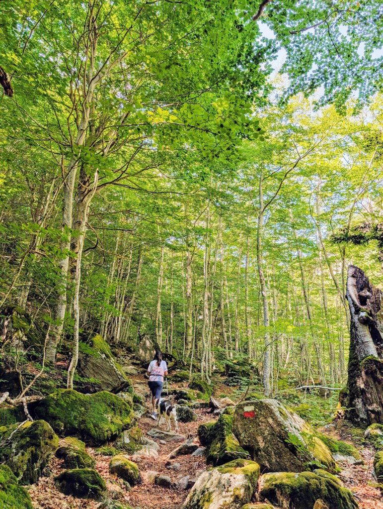 La ascensión transcurre por un hayedo frondoso, con el río Salenques acompañándonos a la derecha. A pesar de ser finales de agosto, el cauce mantiene un caudal generoso, lo que hace el recorrido especialmente agradable.