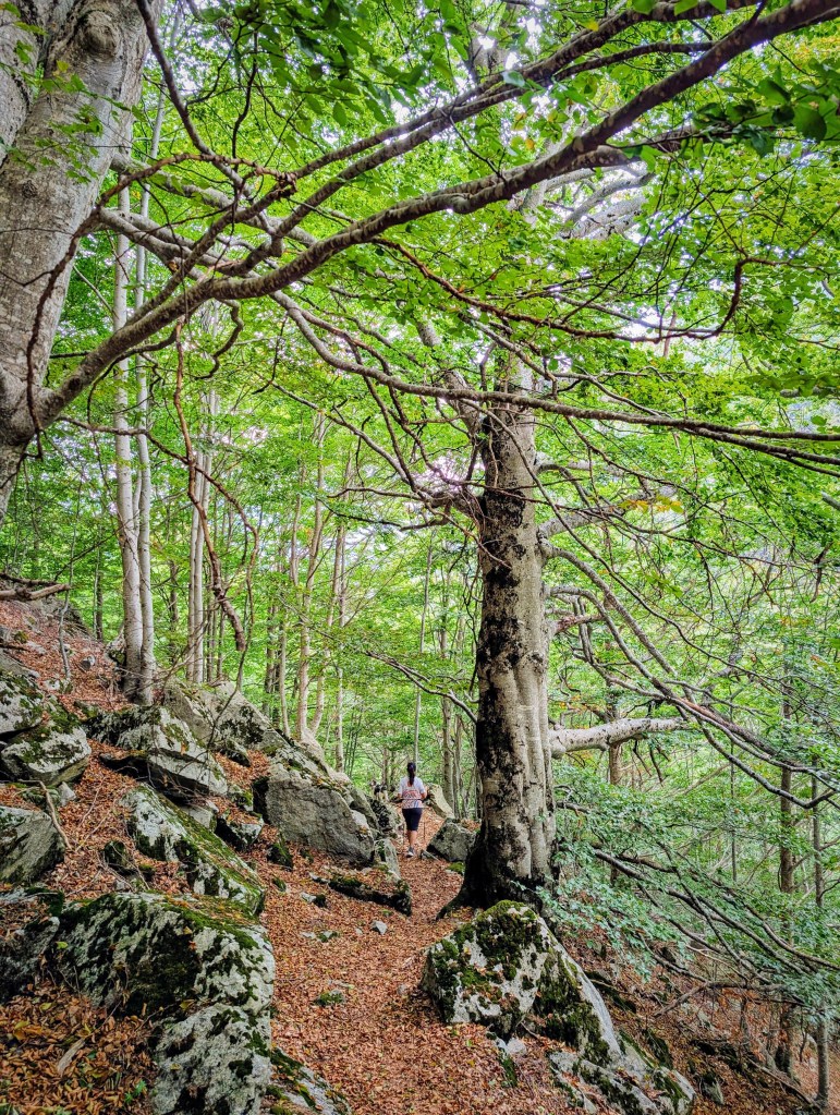 Tras disfrutar del entorno, regresamos por el mismo camino hasta el cruce de senderos, donde tomamos el desvío a la izquierda que baja nuevamente hacia el embalse de Baserca. Este tramo es también muy agradable, atravesando de nuevo el hayedo.